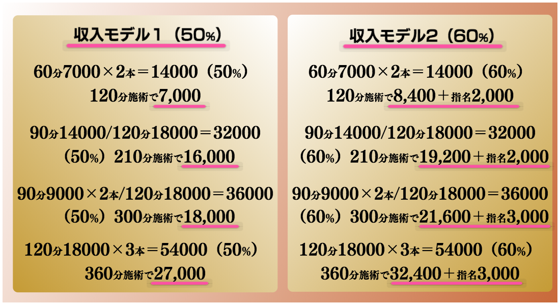 アロママッサージ、ボディケアマッサージ、タイ古式マッサージの3種類を基本として、リフレクソロジー、ヘッドマッサージ、ハンドマッサージ、リンパドレナージュ、フェイシャルマッサージと豊富な各種メニューをご用意しております。