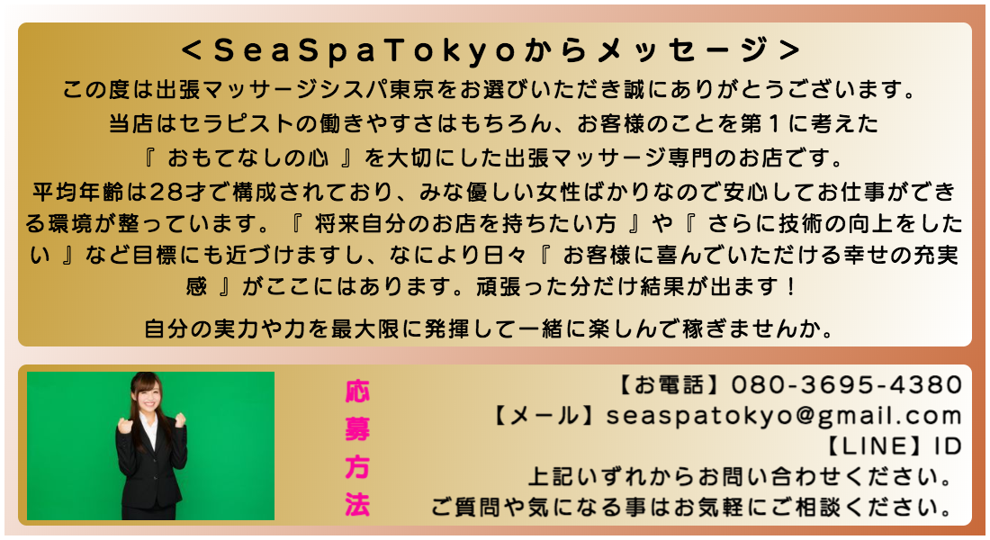 東京で出張マッサージならシスパ東京にご要望くださいませ。